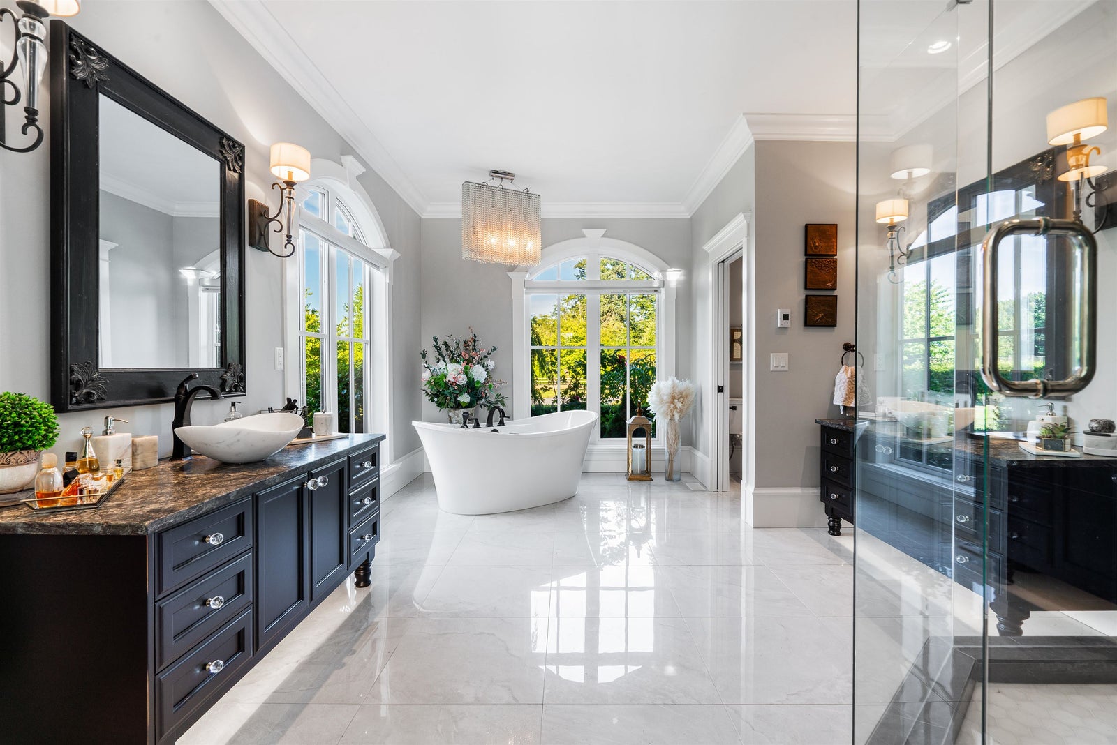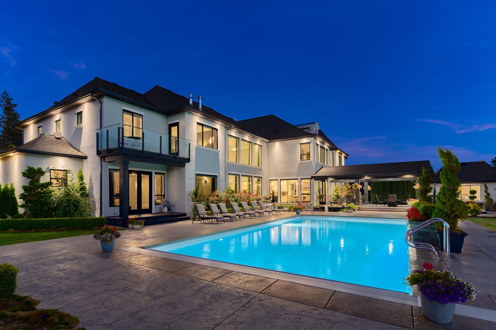 Discover this magnificent European Inspired French Chateau situated on this gated 7.1 acre Equestrian Estate in Langley’s most exclusive Campbell Valley. The main residence together with its private guest suite offers over 9200 sq. ft. of elegant living space on two expansive levels with entertainment size principal rooms, 7 bedrooms, 8 bathrooms and boasting an impeccable choice of quality materials and luxury appointments. Experience a wonderful indoor outdoor lifestyle with walk out covered terrace with summer kitchen and fireside lounge overlooking the resort swimming pool and spa. Additional features include a separate barn with 6 stables, round pen, riding ring and garage parking for 7 vehicles.