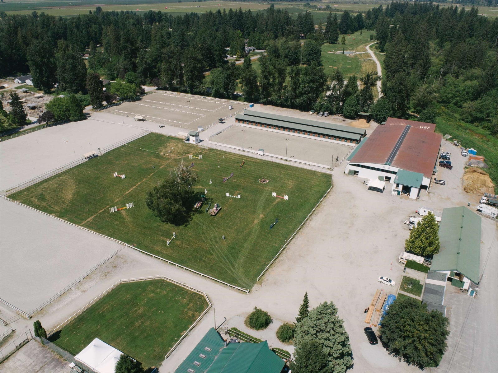 Introducing the iconic Maple Ridge Equi-Sport Centre, a premier equestrian show facility that stands unrivaled! This one-of-a-kind property boasts an impressive 161 stalls and 27 paddocks, w/ room for expansion. Enjoy the luxury of four outdoor riding rings, grass riding ring and a spacious indoor arena, offering endless possibilities for equestrian enthusiasts. As an added bonus, the Ranch Pub & Grill is a fully operational restaurant, perfect for unwinding after a day of riding. Boasting multiple road frontages, this property offers exceptional accessibility & visibility. Perfect for maximizing exposure and opportunities! Nestled on a stunning flat acreage with breathtaking mountain views, a 5 Bedroom & 2 Bath Home, this is more than a facility—it's a dream destination for horse lovers!