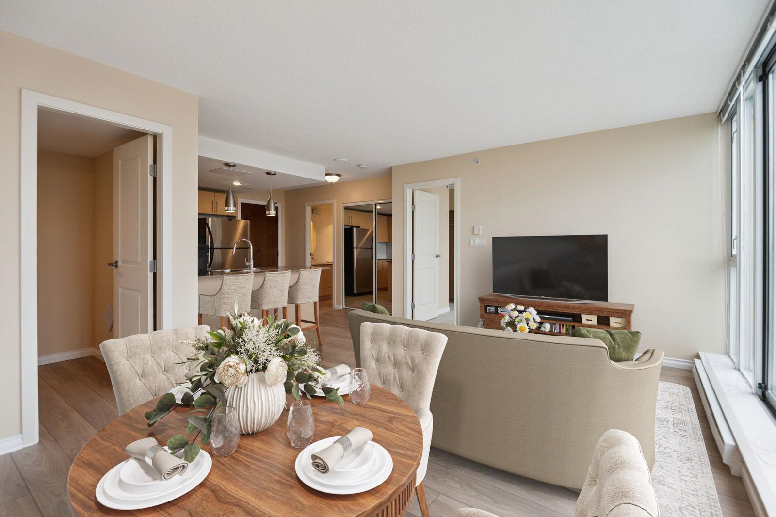 Welcome to your vibrant downtown Vancouver retreat! This bright and airy 2-bedroom + den home offers 879 SQFT of stylish, open-concept living with three private balconies to soak up stunning south and east views. Featuring two full bathrooms and spacious in-suite storage, this rare corner suite combines function and flair. The smart layout flows effortlessly for entertaining or relaxing, with natural light pouring in from every angle. Perfectly positioned in the heart of downtown, you’re just steps to shopping, dining, the seawall, transit, and all the city’s best spots. A modern urban haven that truly has it all — space, style, and the ultimate Vancouver lifestyle!